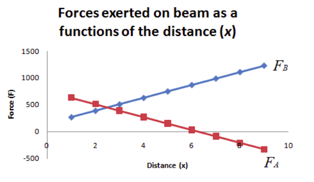 ∑τA=(600N)(x)+(300N)(2.50m)−FB(5.0m)0=600x+750N⋅m−5FB5FB=600x+750N⋅mFB=120x+150N⋅m