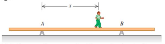 (a) The boy, weight 600N, walks toward the right with a distance x from point A. The free-body diagram is shown below.